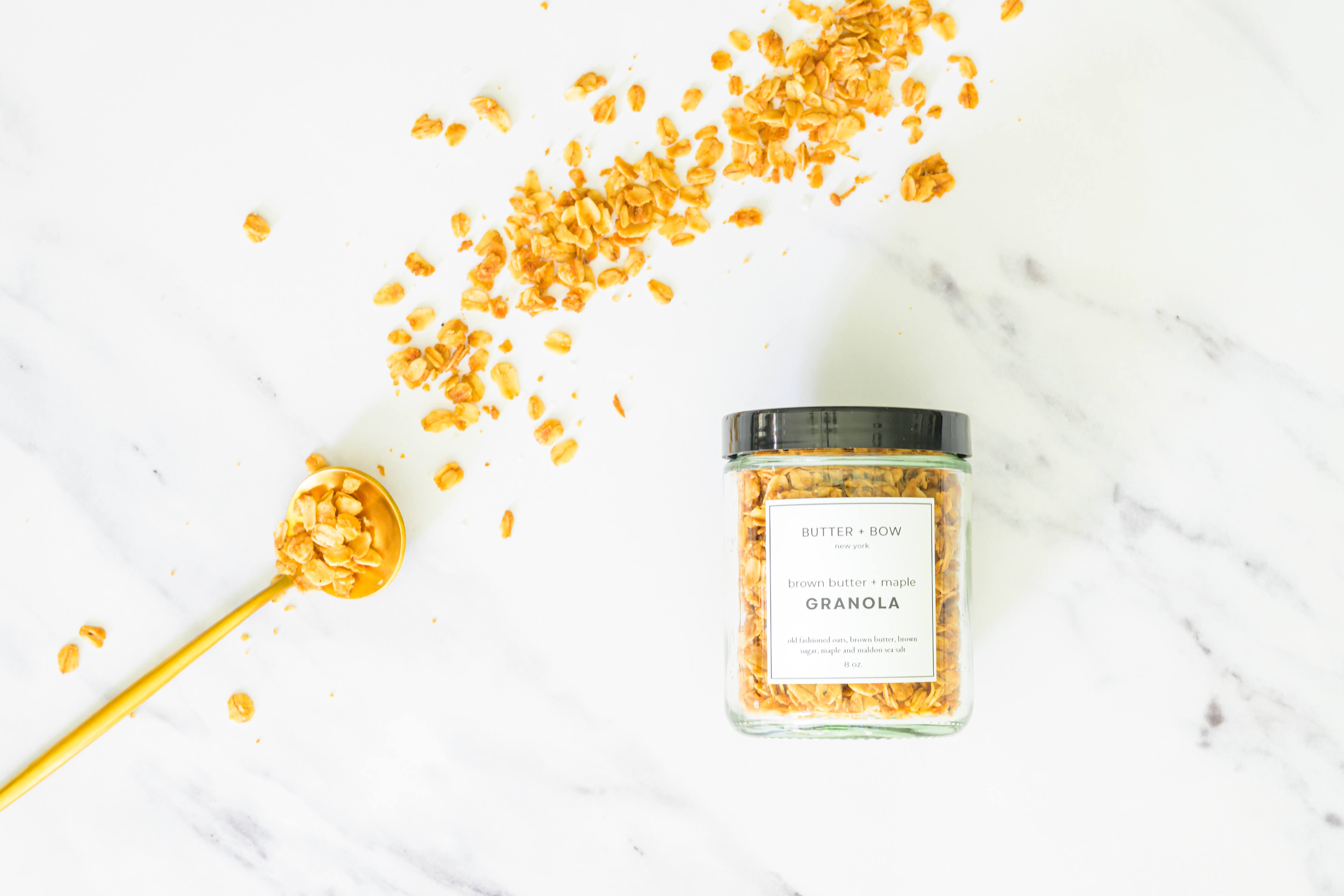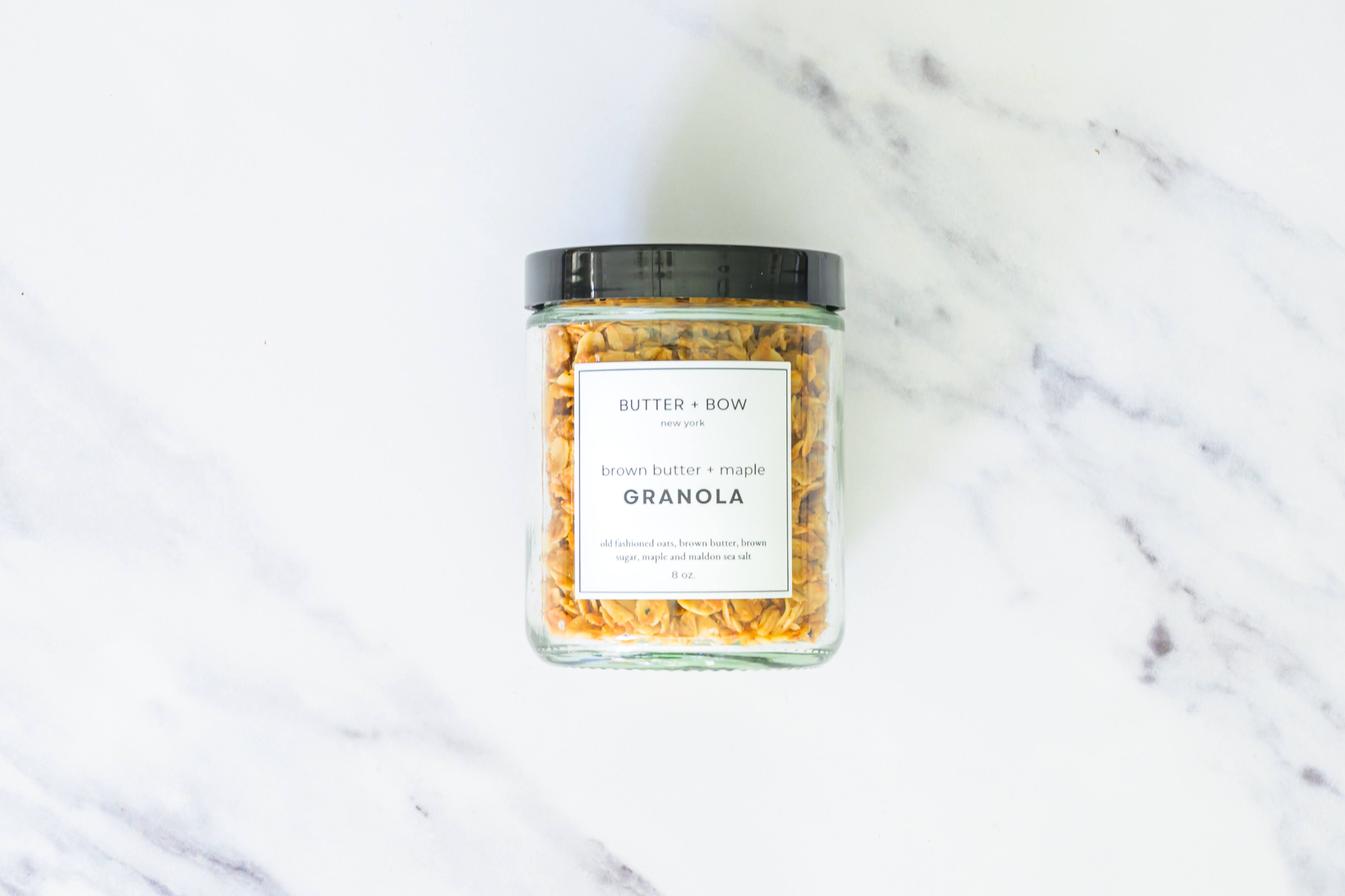 Our Brown Butter + Maple Granola is slow-baked with European-style butter, pure maple syrup, and a sprinkle of Maldon sea salt. The result is a golden, buttery crunch with just the right balance of sweet and savory. Perfect by the handful, over yogurt, or as an elegant topping to elevate any breakfast.