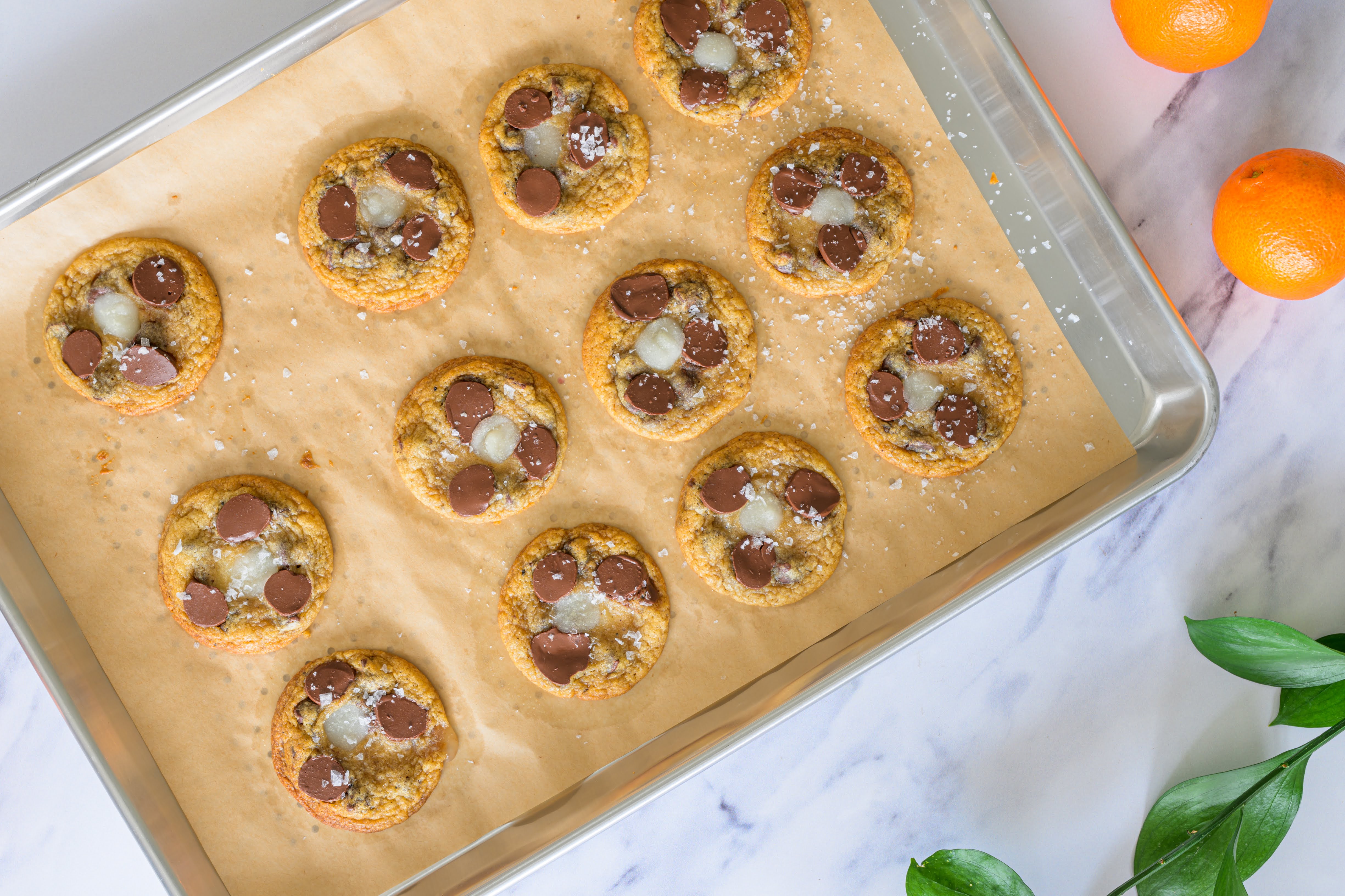 This cookie starts with our Life-Changing Chocolate Chip, then follows a path we’ve been wanting to explore for a long time. Mochi is one of our favorite foods and textures, something we’re endlessly drawn to in mochi waffles and mochi-filled baked goods. We wanted to bring that same chew into a chocolate chip cookie.