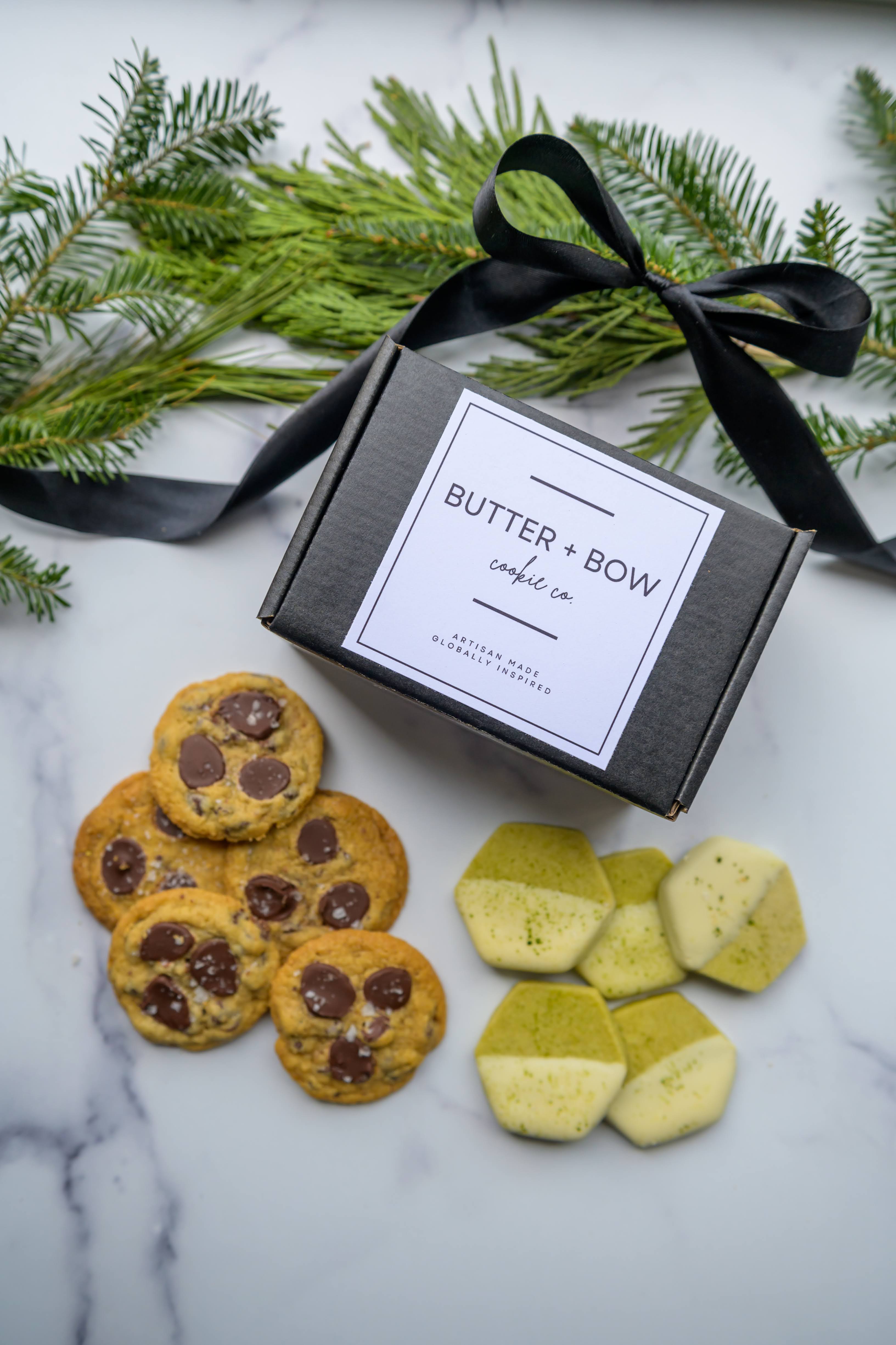 Includes 10 handcrafted cookies: 5 Salted Brown Butter Chocolate Chip + 5 White Chocolate Matcha Shortbread