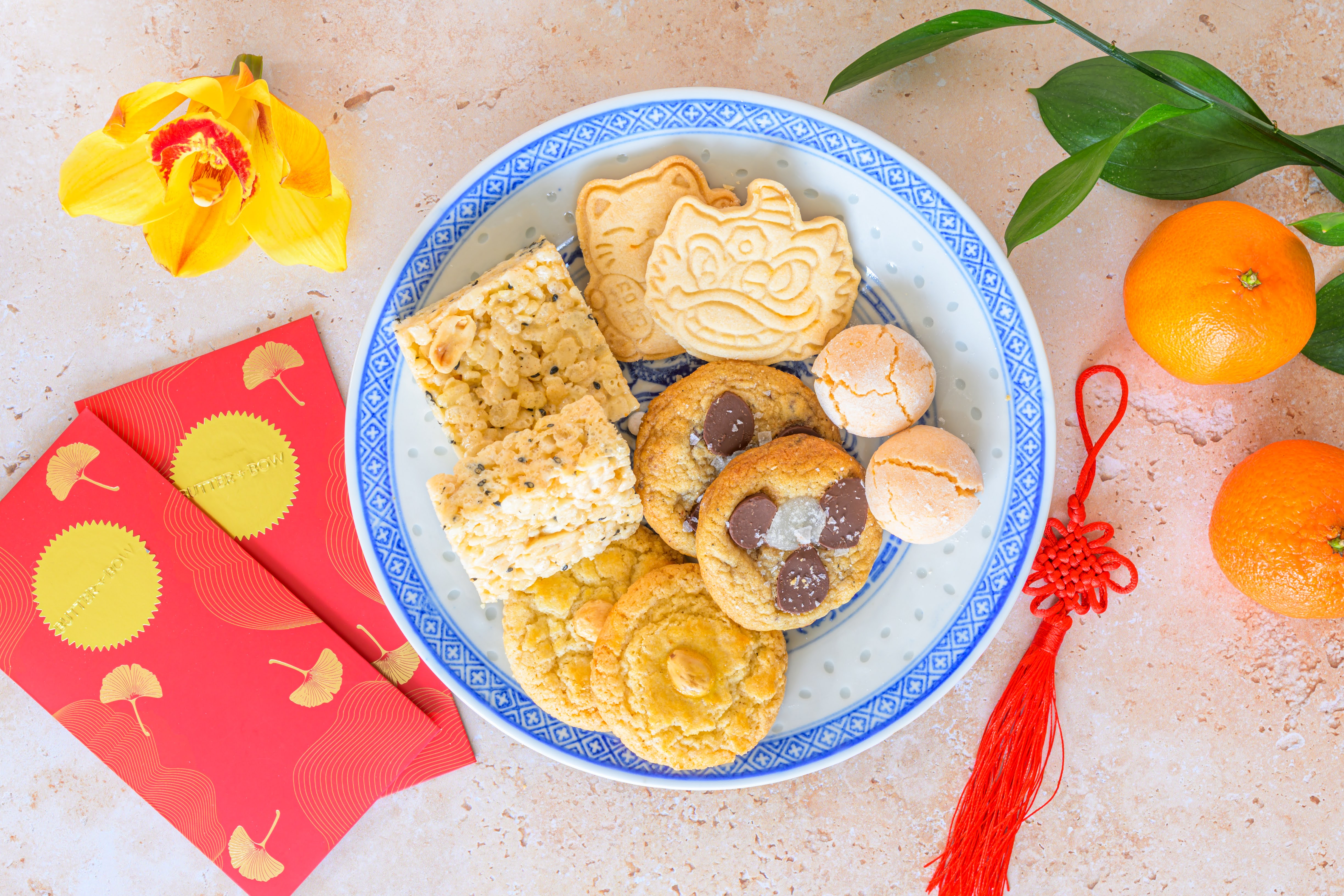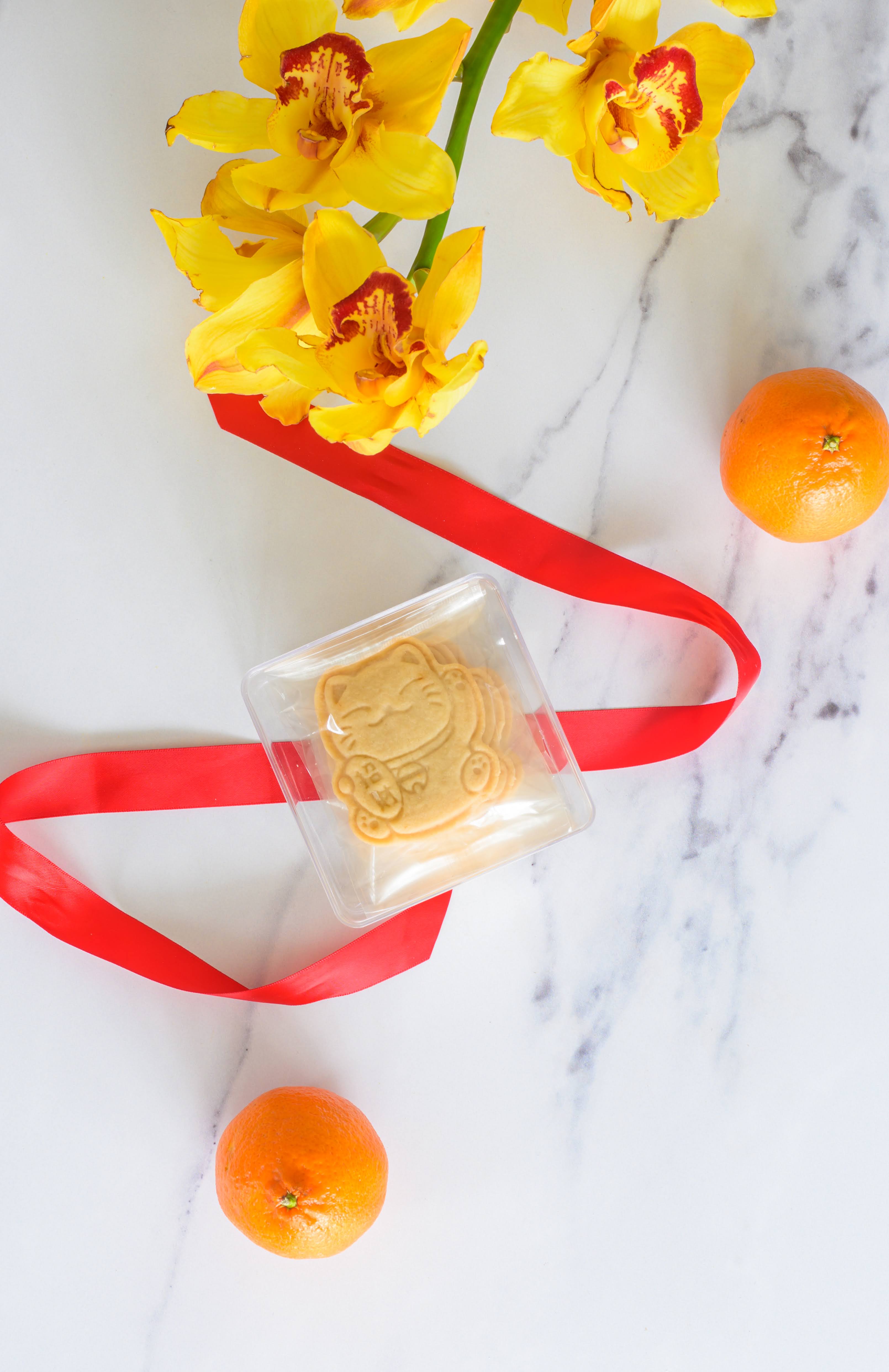 Six subtly savory shortbread cookies pressed with designs inspired by the lion dance and the prosperity cat. A nod to a beloved flavor popularized across Asian desserts and snacks, offering richness, restraint, and depth.